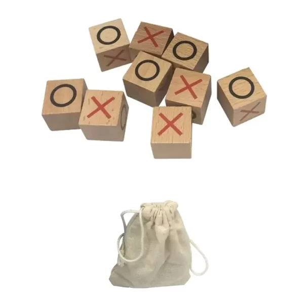 משחק אסטרטגיה עבור 2 מתמודדים: משחק איקס עיגול XO הנוסטלגי, עשוי מקוביות מעץ איכותי ונרתיק נשיאה מבד (לנסיעות).